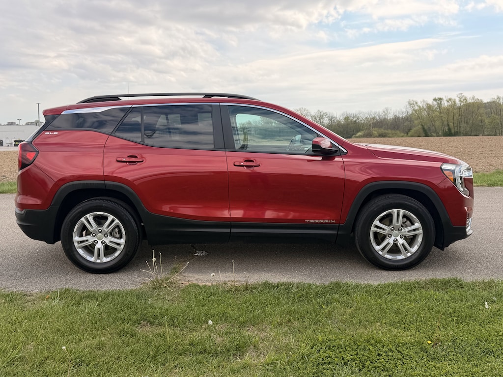 Boasts 29 Highway MPG and 24 City MPG! This GMC Terrain delivers a Turbocharged Gas I4 1.5L/ engine powering this Automatic transmission. WHEELS, 17 X 7 (43.2 CM X 17.8 CM) SILVER PAINTED ALUMINUM, VOLCANIC RED TINTCOAT, TRANSMISSION, 9-SPEED AUTOMATIC 9T45, ELECTRONICALLY-CONTROLLED WITH OVERDRIVE.